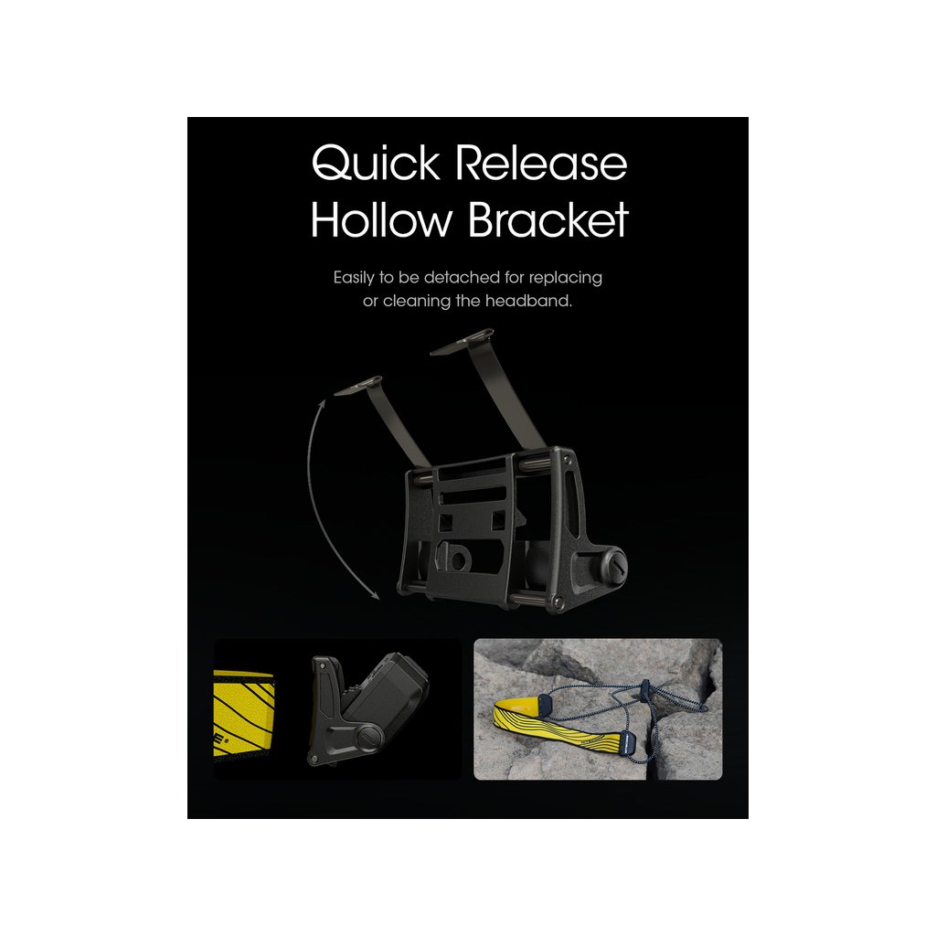 Čelovka má zajímavě řešené popruhy, které jsou kombinací klasického, plochého popruhu s posilikonizovanou vnitřní stranou a dvěma pružnými šňůrkami s reflexními prvky. Pro vhodné upravení na hlavě samozřejmě disponuje jednoduchým stahováním. Čelovku lze také velmi snadno a rychle vyjmout z držáku a můžete ji tak snadno očistit nebo ji "osekat" třeba jen pro použití jako kapesní svítilna.