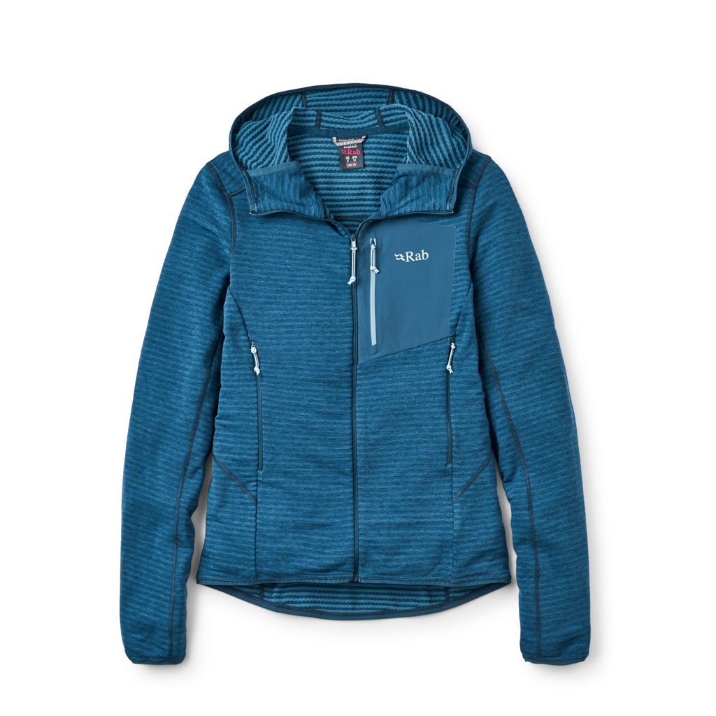 Klasickým tlustým fleecům už nejspíš definitivně odzvonilo a v posledních letech se na výslunní dostávají lehčí kousky se strukturovaným fleecem. Důkazem toho budiž řada středních vrstev Ascendor, která se v minulé sezóně stala jedním z absolutních Rab bestsellerů. Ta je v různých typech a kombinacích založena na recyklovaném "Rabáckém" materiálu Thermic.