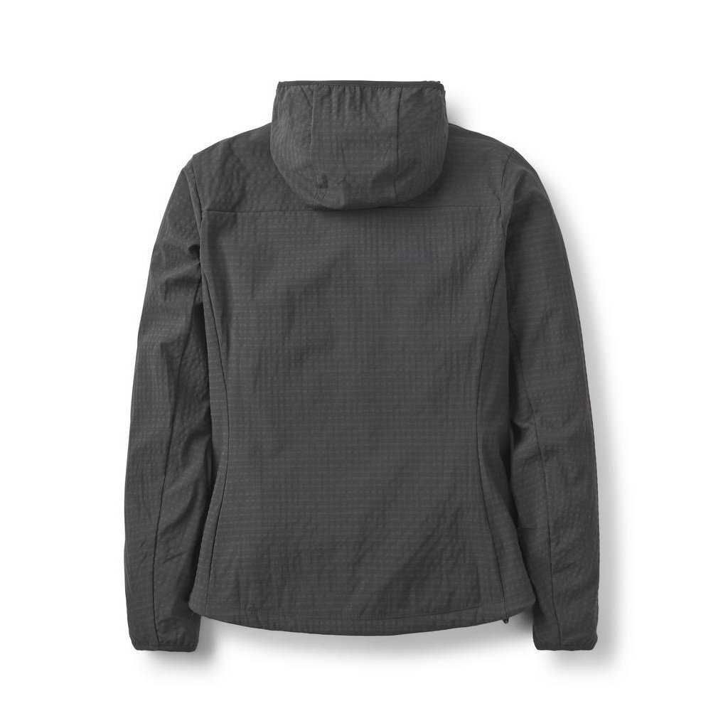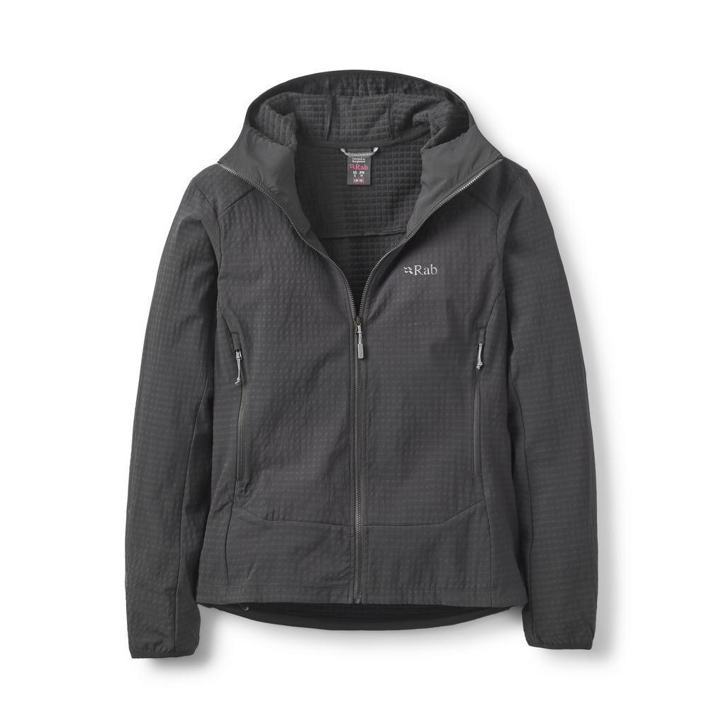 Jedná se v podstatě o dámskou variantu modelu Rab Ascendor Pro Hoody v naší nabídce. Náprsní zipové kapsy jsou pro uzpůsobení ženské anatomii posunuty níže na břicho. Dle našich holek takto umístěné kapsy dávají jednoznačně větší smysl než hrudní kapsy. Stále jsou ale pohodlně dostupné i v sedacím úvazku nebo s bederním pásem batohu. Kapuce je opatřena pružnou lemovkou (a určena pod přilbu) stejně jako konce rukávů. Spodní lem je oboustranně stahovatelný. Všechny zipy jsou YKK a centrální zip je v plné délce.