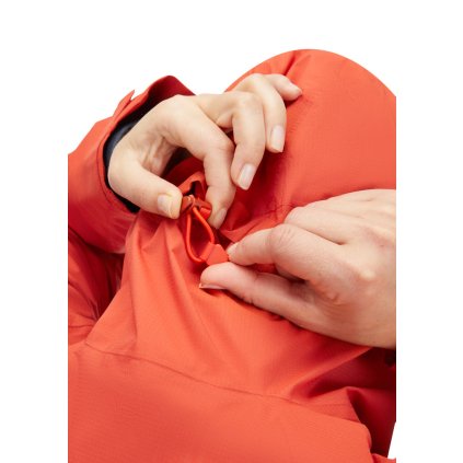 Rab použil vlastní membránu Proflex v 2,5 vrstvé variantě s 20D (délková hustota vlákna) v gramáži 72 g/m2. Díky tomuto materiálu bunda nabízí standardní parametry vodního sloupce/prodyšnosti 20/20 při zachování nízké hmotnosti (219 gramů ve vel. M). Přidej k tomu parádní sbalitelnost, hodně solidní cenovku a máme tu kandidáta na nepromokavou bundu roku. U Rab Downpour Light najdeš vše, na co si byl zvyklý u léty prověřeného Rab Downpour. Dostatečně velká kapuce s pružným kšiltíkem. Ta v pohodě pojme i lezeckou přilbu, ale díky vychytanému stahování skvěle funguje i při běžném použití bez helmy.