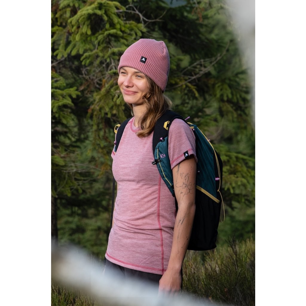 Tady jsme vsadili na kombinaci merino vlny a syntetiky v poměru 55% vlna a 45% polyester. Díky jemné merino vlně (průměr vlákna 22,5 µm) je triko příjemné na tělo a hlavně si zachovává své tepelně izolační vlastnosti, i když je vlhké a přirozeně potlačuje zápach. Polyester se zase stará o dostatečnou pevnost úpletu při nízké gramáži a hlavně rychle schne!