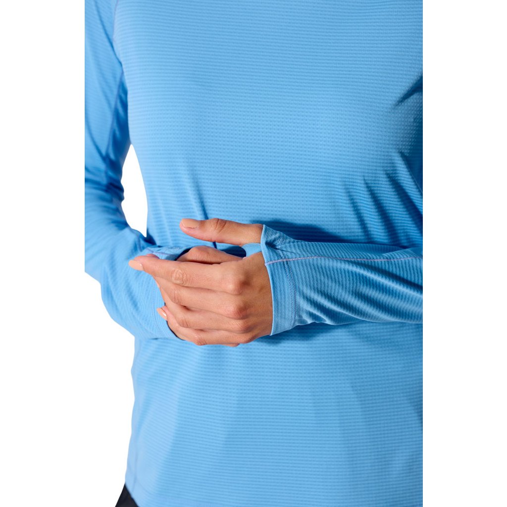 Všechny švy jsou tenké, pružné a přesně kopírují pohyb těla. Při dlouhých akcích tak maximálně eliminují riziko oděru a v kombinaci s pružným materiálem Dryflo™ a klínkem v podpaží triko umožňuje maximální rozsah pohybu. Nejen při vrstevní oblečení potěší poutko na palec a kapuce je v zavinovacím stylu (wrapstyle).