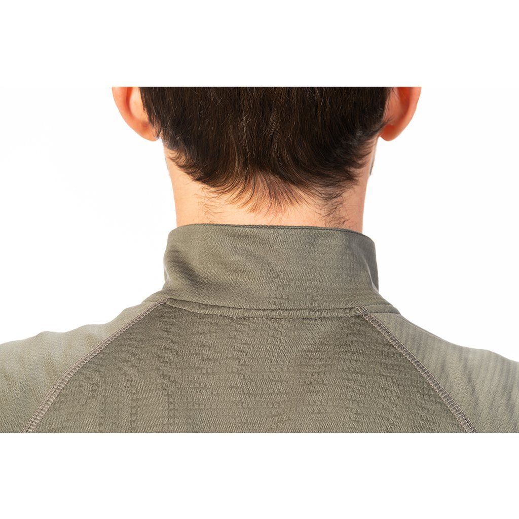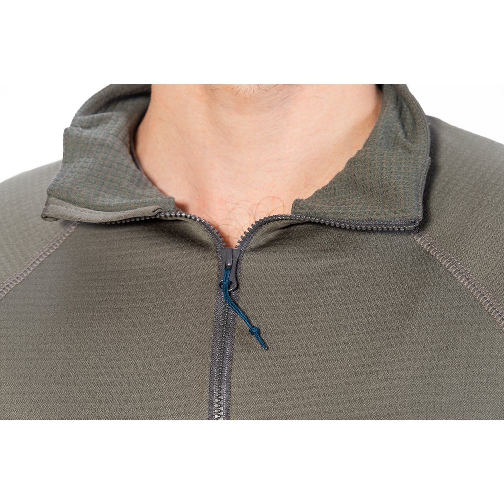Celkový střih a detaily mikiny jsou ve velmi minimalistickém duchu. Kapsy ani kapuci u mikiny nehledejte. Zip je krátký, ale naprosto dostatečný pro převlečení přes hlavu. Velký důraz jsme kladli na stojáček, aby dostatečně chránil krk, ale zároveň ho nijak neomezoval.