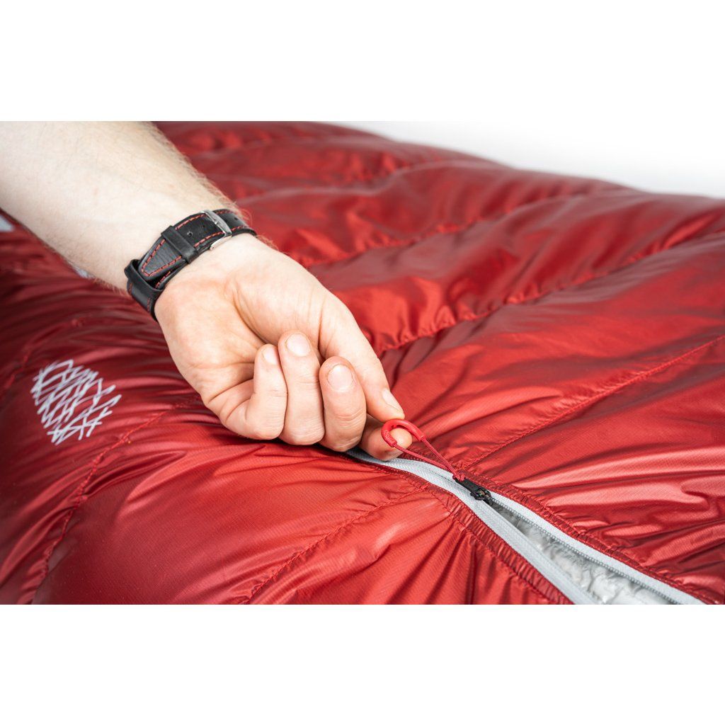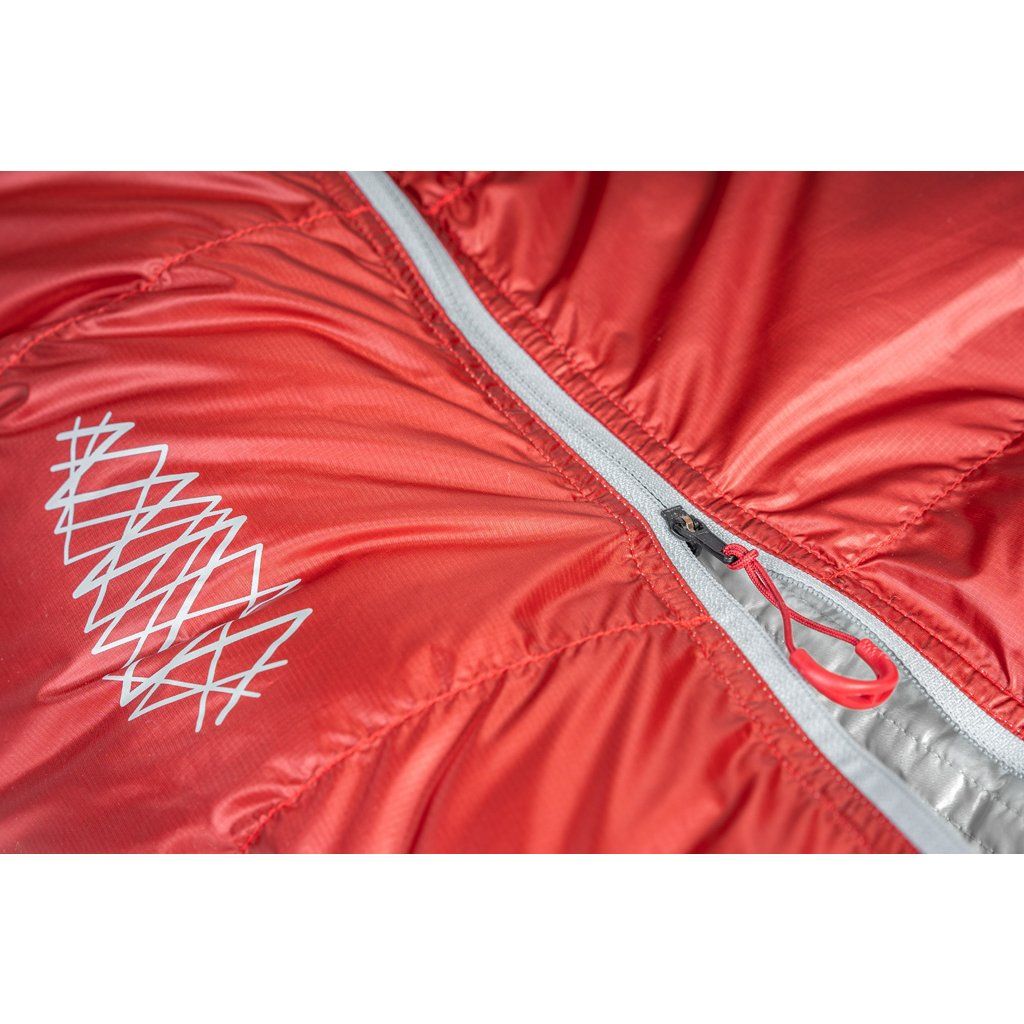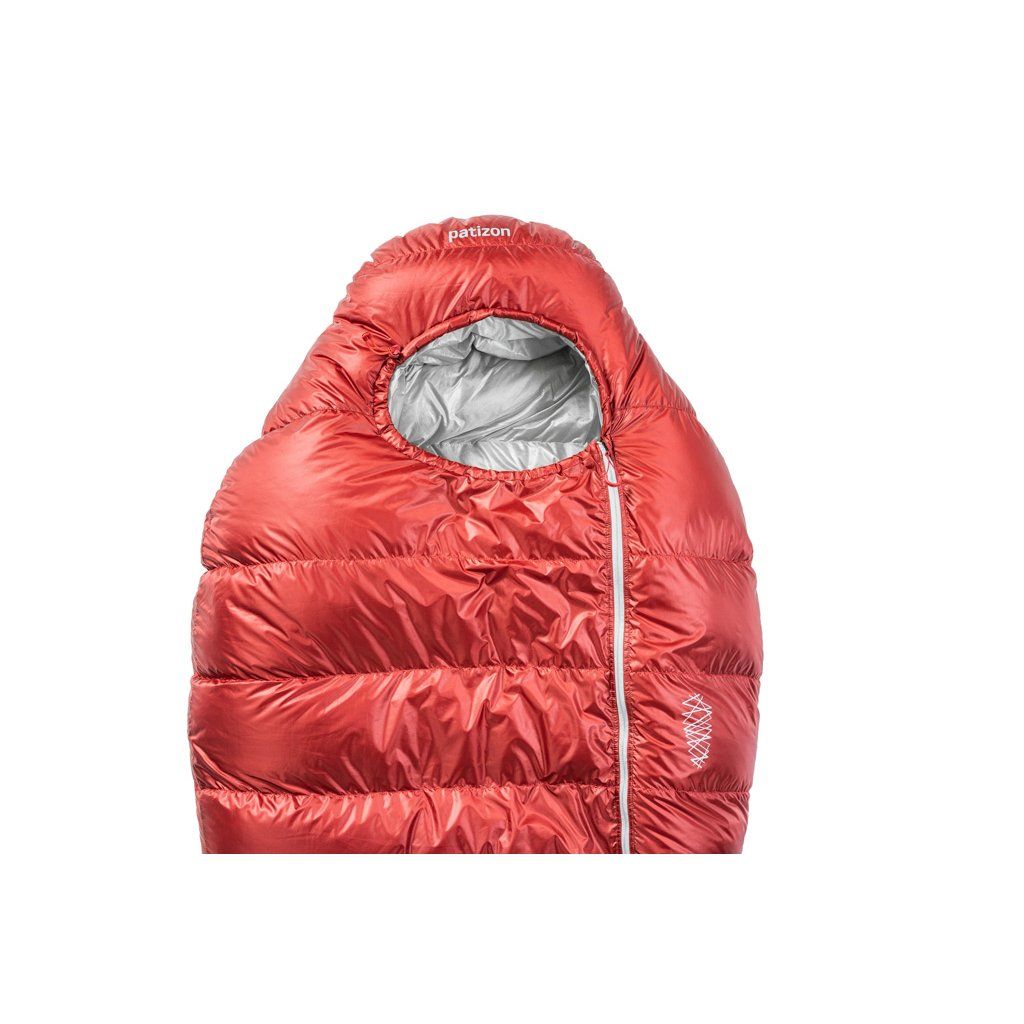 Konstrukce komor ve tvaru Z napomáhá rovnoměrnému rozložení náplně v komorách a zároveň zabraňuje vzniku chladných míst ve švech. Spacáky Patizon mají anatomický tvar, tak že kopírují tvar postavy aby docházelo k co nejefektivnějšímu udržení tepla. V ramenou jsou ovšem spacáky nadstandardně široké, takže se v nich dá pohodlně otočit. V nohách jsou komory upraveny tak, aby byla izolace co nejvyšší. Na kapuci si v Patizonu dali opět velmi záležet. Skvělý tvar, stahování jednou rukou a obvodová léga vyplněná syntetickou izolací Climashield kvůli náchylnosti na vlhký vzduch, který do kapuce vydechujeme. Celý hlavní zip je samozřejmě podložený izolační légou, aby se eliminoval únik tolik drahocenného tepla. Uvnitř spacáku nalezneme prostornou kapsičku na zip o rozměrech 20 x 20 cm, která bez problému pojme telefon, čelovku, baterie nebo jakékoliv drobnosti, které je nutné udržet v teple. Jako největší vychytávka spacáků Patizon je poloautomatický, dvoucestný YKK zip. Ten funguje ve dvou polohách – Stop and Go. V poloze Stop (taháček směrem dolů) je zip aretovaný v dané poloze a nerozepíná se, aniž by musel být pojištěný drukem nebo suchým zipem. V poloze Go (jezdec nahoru) lze zip rozevřít pouhým roztažením do stran. Rychlé a efektivní.