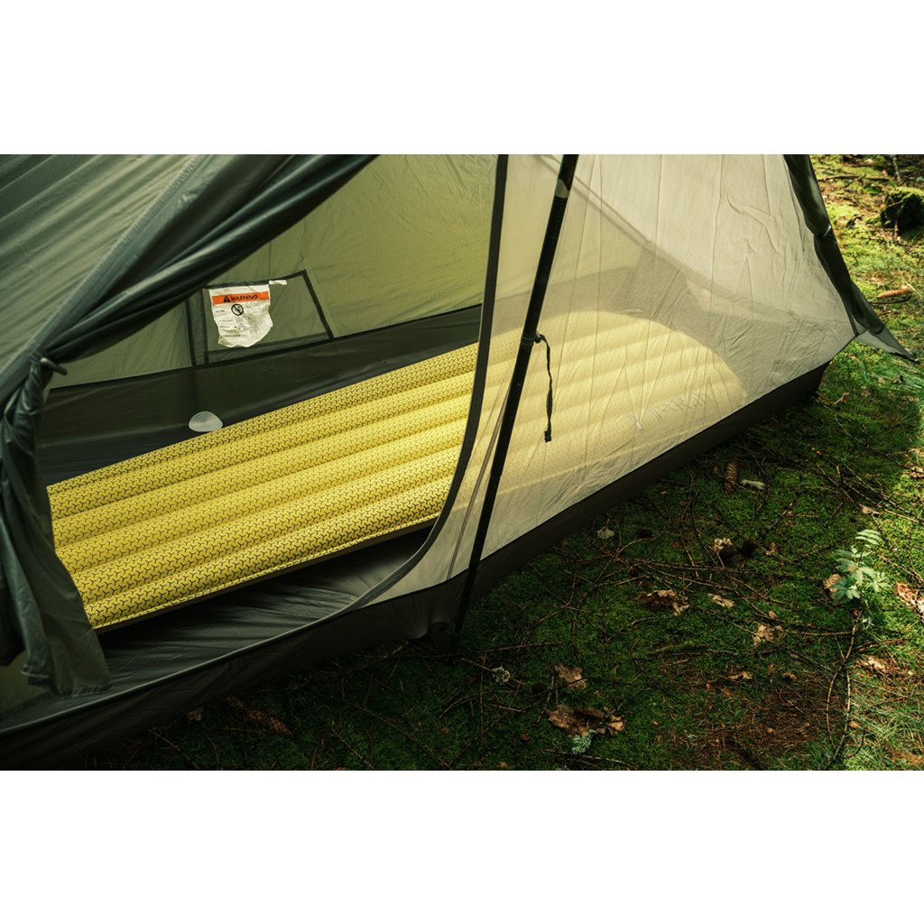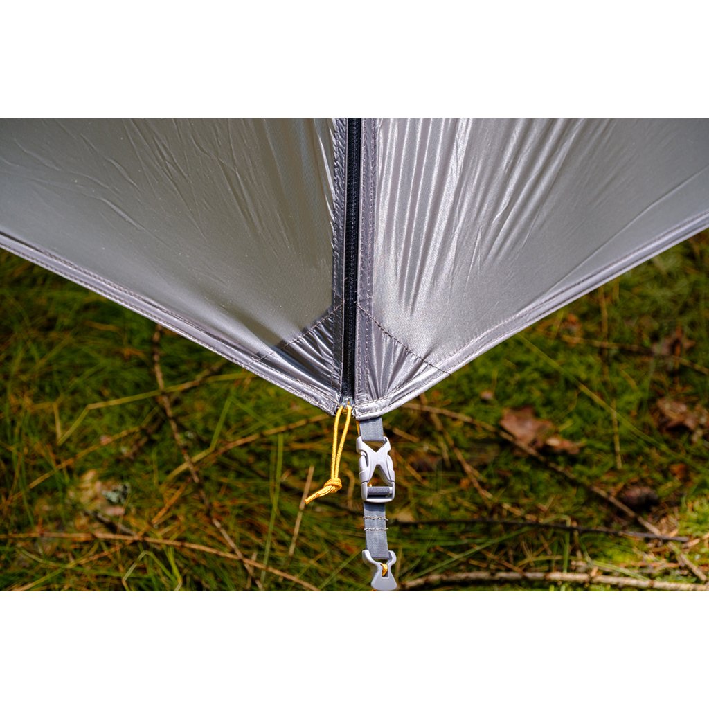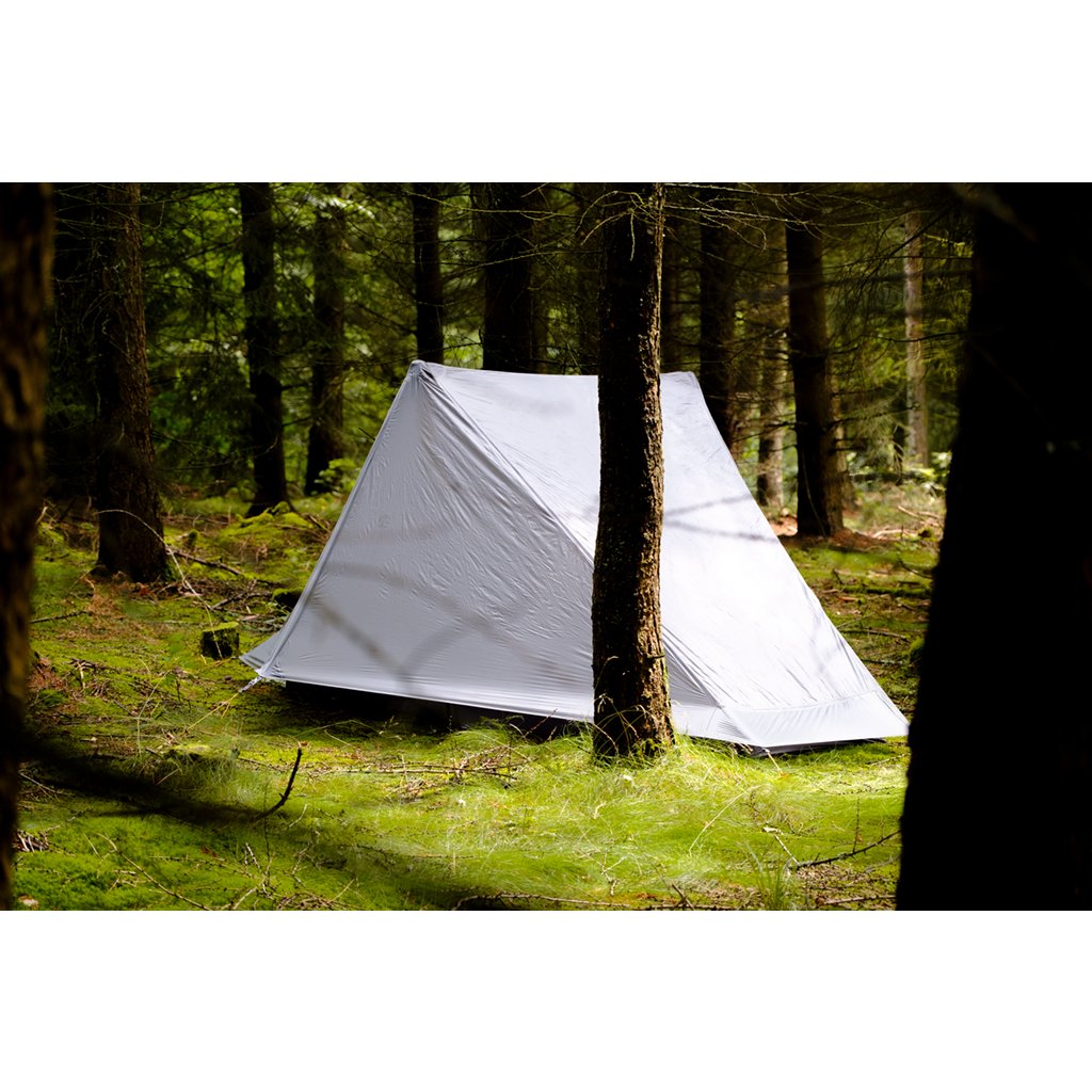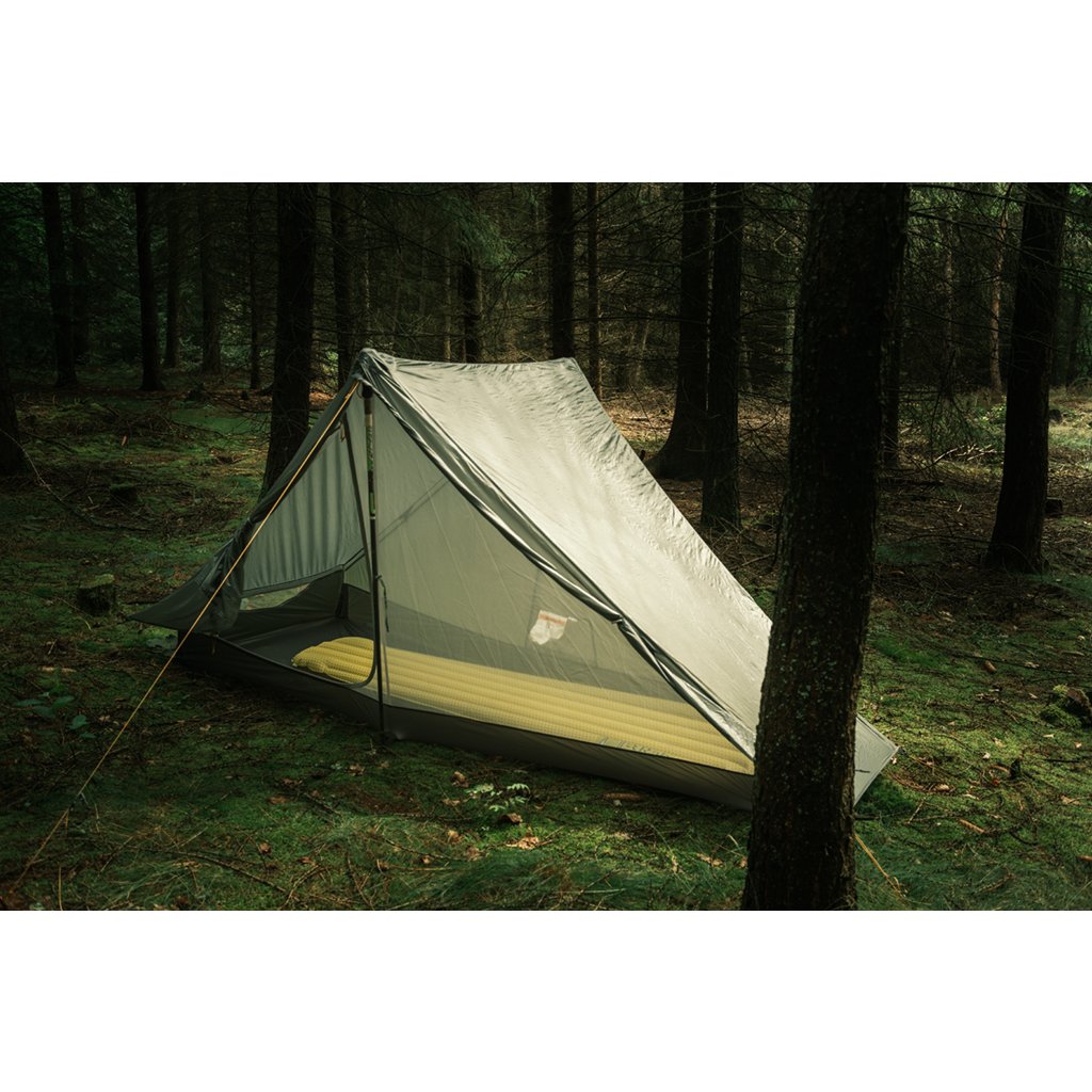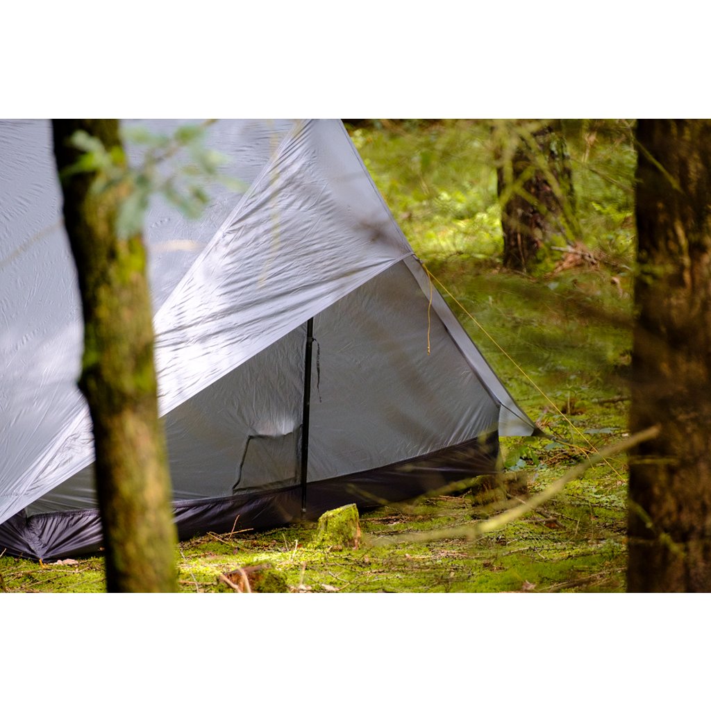Jedná se o jednoplášťovou hybridní konstrukci, kdy je část vnitřního stanu oddělená od předsíně. V podstatě se jedná o jednoduchou pyramidu, která se staví na dvě trekové hole, ale má již všitý vnitřní stan včetně podlážky. Stan je vyroben z velmi lehkého, ale přesto pevného silikonizovaného 10D nylonu s vnitřním PU zátěrem. Pro zachování co nejdelší životnosti podlážky rozhodně doporučujeme pod stan používat ještě tyvek nebo polycro. Z jedné strany má The One vstup s plnohodnotnou předsíní u které se dají otevřít obě křídla. Ideální je třeba nechat srolovanou jednu polovinu předsíně, díky čemuž zajistíte daleko lepší ventilaci stanu a omezíte tak vnitřní kondenzaci. Podlážka je v podstatě jedna velká a vysoká vana, díky které vám dovnitř stanu nemůže zatéct. Nad touto vanou pak už navazuje síťovaný vnitřní stran, který zajistí maximální ventilaci celého stanu. Na protější straně je standardní předsíň nahrazena jednoduchou, zkrácenou stříškou, která skvěle chrání vnitřní prostory před deštěm, ale zároveň podporuje lepší ventilaci. Je potřeba také zmínit, že v podlážce u nohou a hlavy jsou umístěné dva síťované průduchy, což je skvělý detail, protože se jedná o místa, kde člověk vydechuje nejvíce vlhkosti.