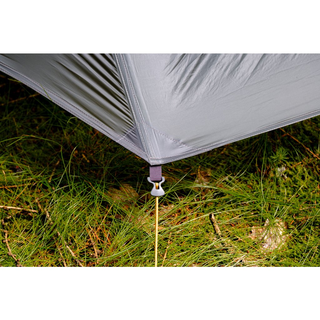 Obrovskou výhodou je, že stan má již z výroby podlepené všechny švy. O nic se tak již nemusíte starat. V balení naleznete také 8 kvalitních hliníkových kolíků (ke stavbě vám postačí 6 kolíků) a dodatečné vypínací šňůry, které doporučujeme používat na poutkách v ploše stanu. Díky těmto poutkám se snadno zvětší vnitřní prostor nad hlavou a nohama. Rohy stanu, kde dochází k největšímu namáhání jsou dostatečně a pečlivě vyztuženy a nechybí samozřejmě reflexní vypínací šňůry s line-locky pomocí kterých je vypínání stanu hračka.