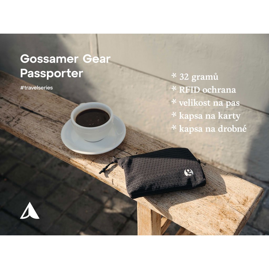 Gossamer Gear Pass Porter disponuje 4 přepážkami a kromě cestovního pasu se do ní samozřejmě vlezou i další doklady a nezbytnosti jako platební karty a hotovost. Kapsička je vybavena technologií RFID chránící karty před nežádoucím odcizením dat.