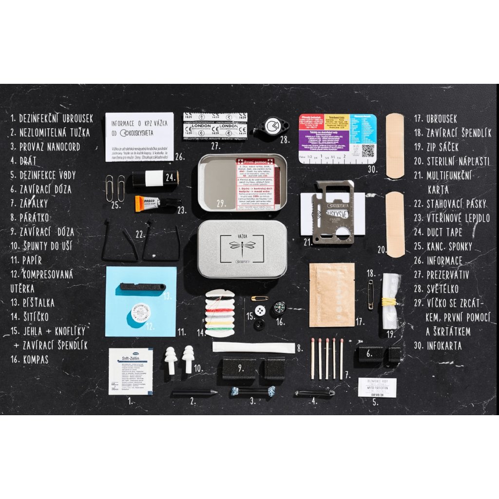Vše co potřebujete je totiž uvnitř téhle malé krabičky! Navíc pro fandy Nalehko i s naší nálepkou :-) Obsah je poskládán tak, aby byla KPZ pro kohokoliv do jakékoliv situace. Obstojí tedy v divočině i ve městě.