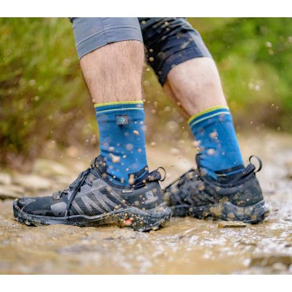 Nepromokavé ponožky Dexshell Running Lite Sock 2.0 jsou zcela vodotěsné, vysoce prodyšné a díky elastickým materiálům dobře sedí na noze. Na rozdíl od neprodyšných a tuhých neoprenových „ponožek“ je jejich používání stejně komfortní, jako u běžných teplých ponožek.