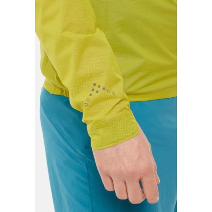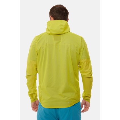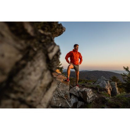 Při použití s velmi lehkým batohem se dá bunda používat i při vícedenních trecích. Bunda je vyrobena ze strečového materiálu 7D Pertex Shield 2.5L, což je v současnosti nejlehčí materiál, který se v outdoorovém trhu používá. Díky streču se podařilo minimalizovat objem po sbalení a neomezuje při aktivním pohybu. Navíc je skvěle sbalitelná. Z použité nízké gramáže materiálu jasně vyplývá, že bunda nebude vhodná pro delší treky a vícedenní zatížení s batohem. Jednodenní akci s lehkým batůžkem určitě bez problému zvládne.