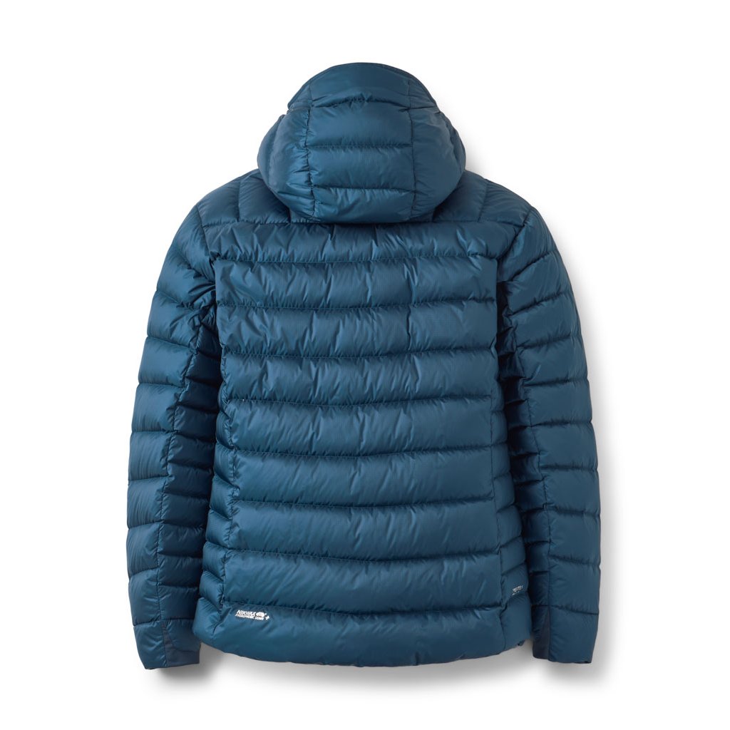 Rab Electron Pro 2.0 je plněn špičkovým evropským husím peřím plnivosti 800FP (179 gramů ve vel. M) s hydrofobní úpravou od Grangers. Vnější materiál je osvědčený recyklovaný 20D Pertex® Quantum Pro s DWR fluorocarbon-free voděodpudivou úpravou. Materiál tak vydrží lehké mžení nebo krátkou přepršku, ale samozřejmě se nejedná o nepromokavou bundu. Podšívka je pak nově z 20D Pertex® Quantum.