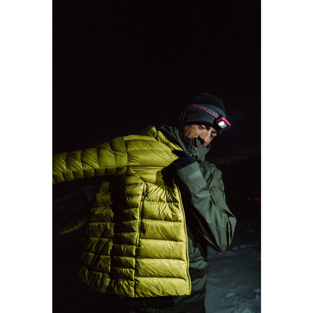 - Izolace: 800FP Evropské husí peří s hydrofobní úpravou Grangers fluorocarbon-free (179g ve velikosti M).