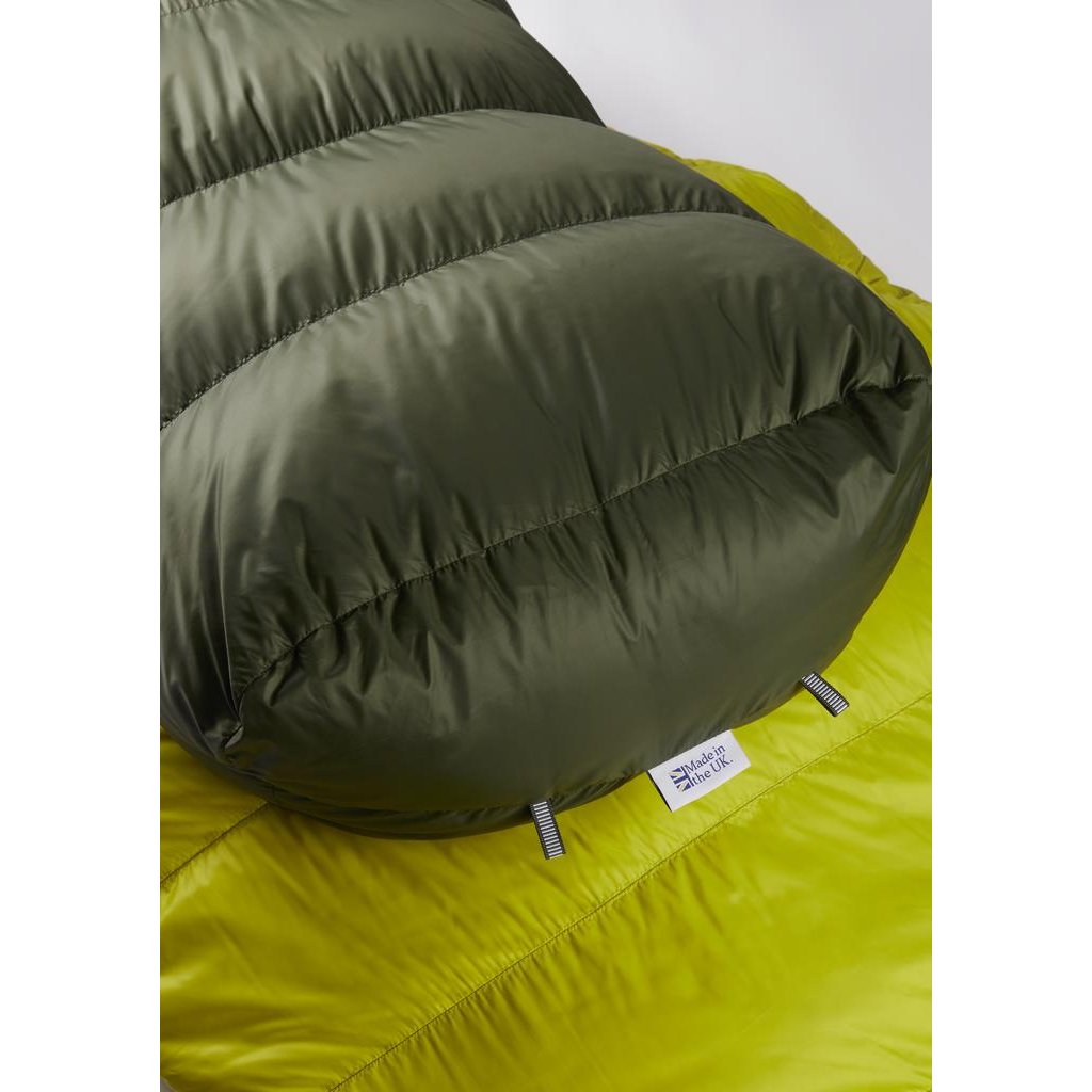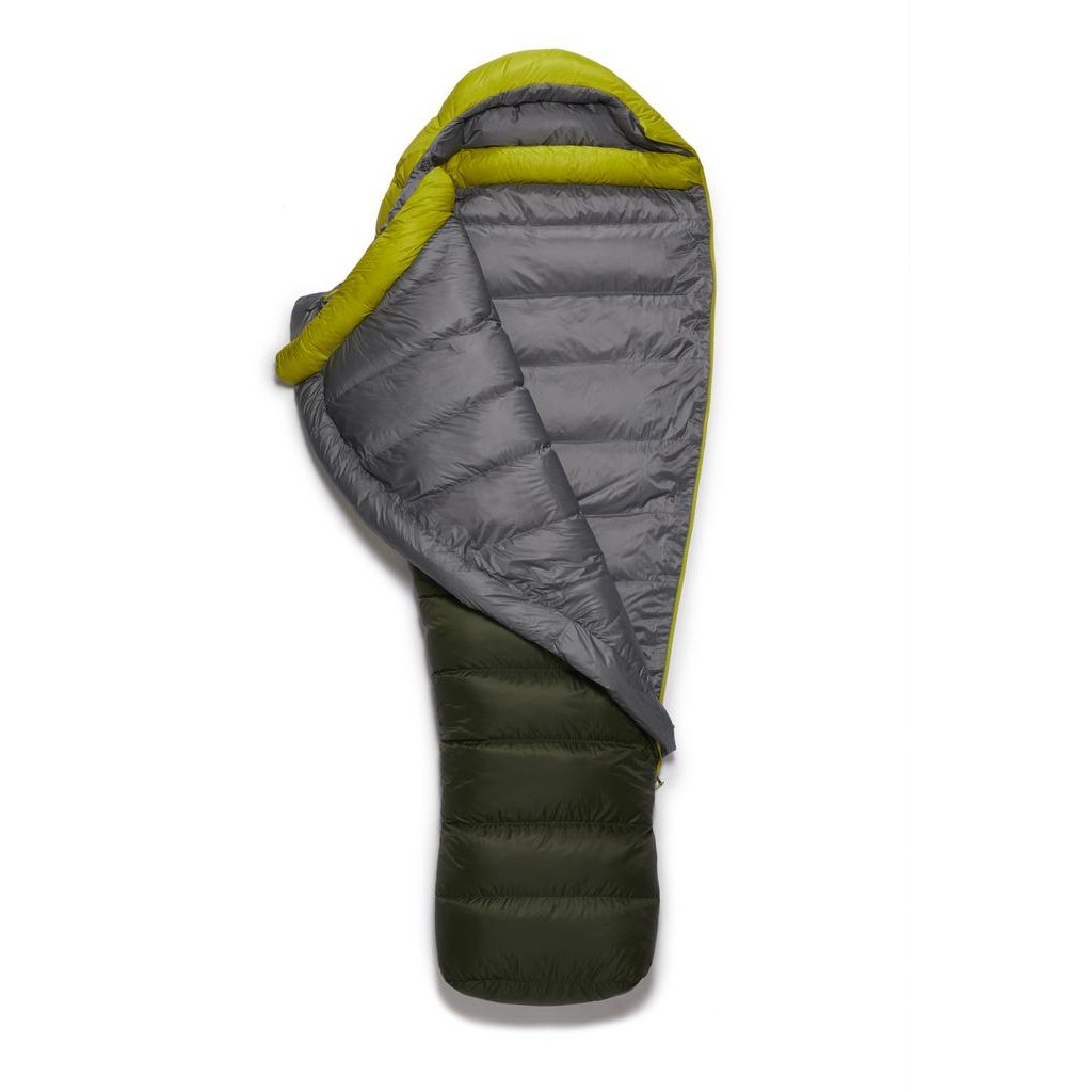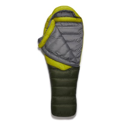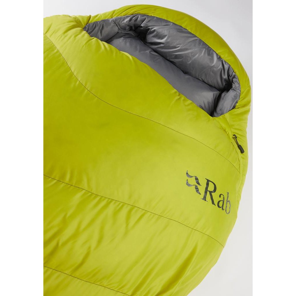 Skvělý je také tzv. “foot box”, který je ve tvaru jakési ploutve, díky tomu máte mnoho prostoru pro nohy. Dvoucestný YKK zip v 3/4 délce s izolovanou přepážkou disponuje YKK vložkou proti zadrhnutí. Rab uvádí komfortní teplotu (ideální teplota z které byste měli vycházet při výběru spacáku), limitní teplotu (teplota při které může standardní muž zůstat v klidu 8 hodin aniž by se probudil), extrémní limit (měla by se brát jako návod, jak by spacák fungoval v nouzové situaci. Nikoliv jako doporučený případ použití. Vztahuje se na teplotu při které standardní žena může zůstat 6 hodin bez rizika úmrtí na podchlazení). Krom toho Rab uvádí tzv. “Rab limit”, ten vychází z vlastních zkušeností a zkušeností sportovců a je brán jako rozumná hranice použitelnosti spacího pytle.