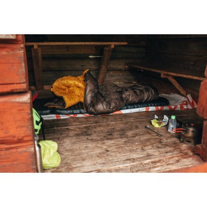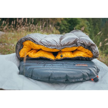 - Součástí balení je jednoduchý silnylonový pytlík, velký bavlněný skladovací pytel a dvě ploché gumičky pro přichycení quiltu ke karimatce