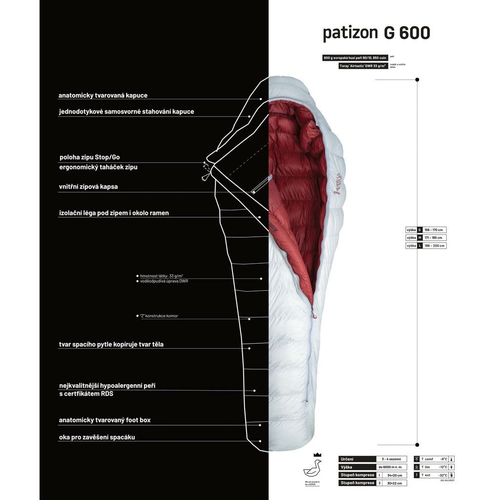 Péřový spacák Patizon G 600 nám nově doplňuje modelovou řadu Patizon G a tvoří střed mezi modely G 400 a G 800. Je pro Tebe čtyřstovka na hraně a osmistovka už váží moc? Tenhle je přesně mezi.