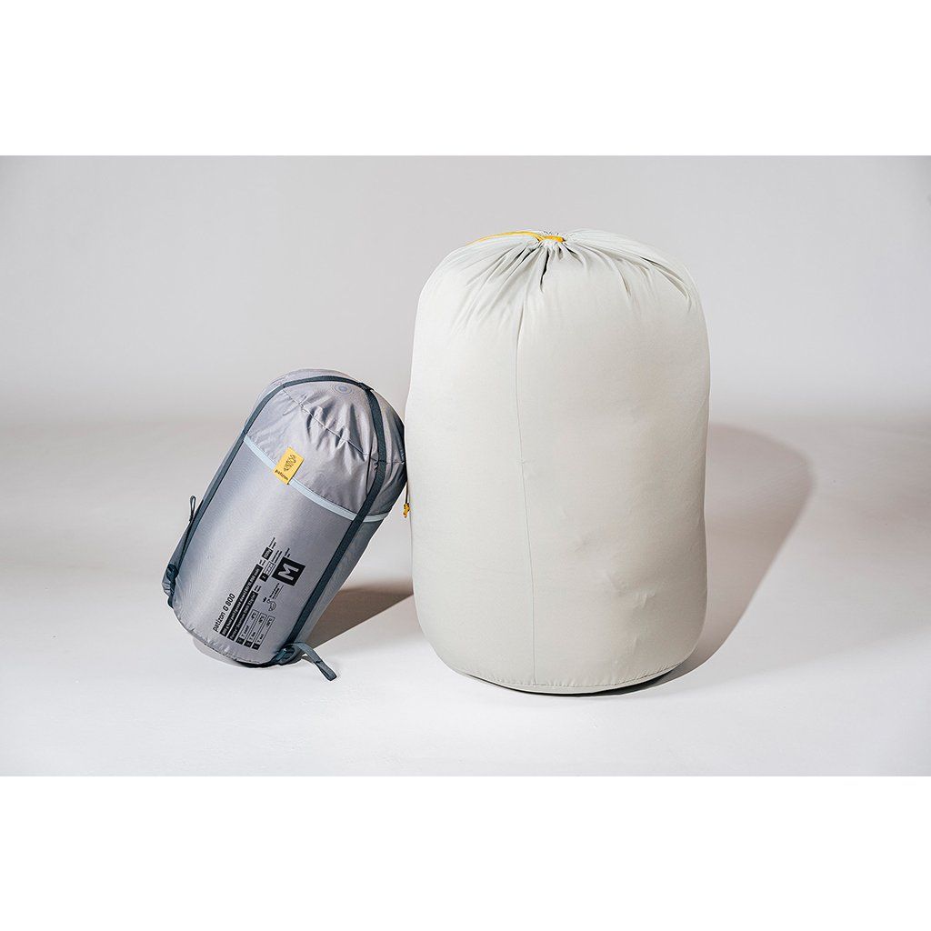 - Ultralehký kompresní obal z materiálu Pertex™ Quantum™ s DWR úpravou zmenší objem spacáku až 13x, dodáván spolu se spacím pytlem.