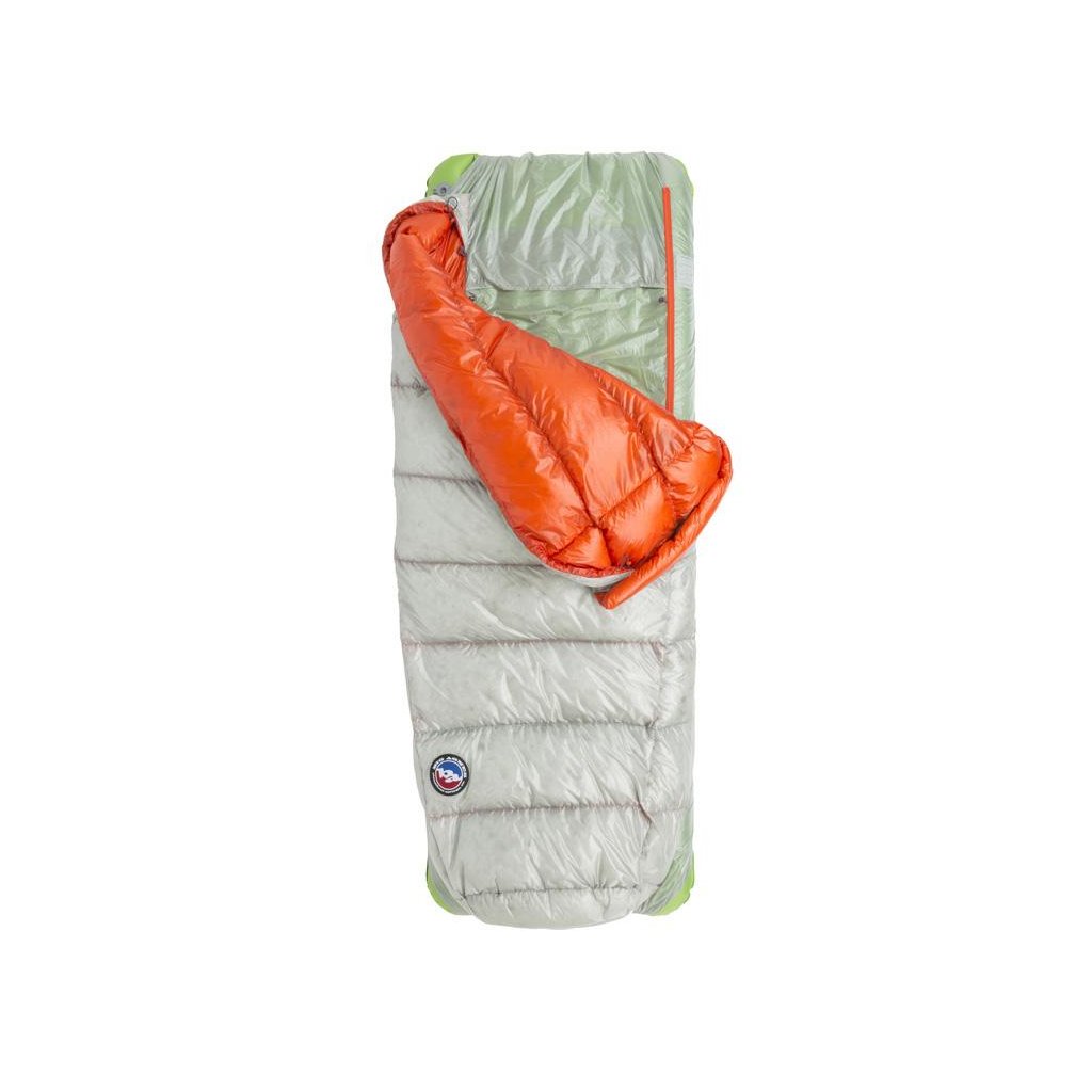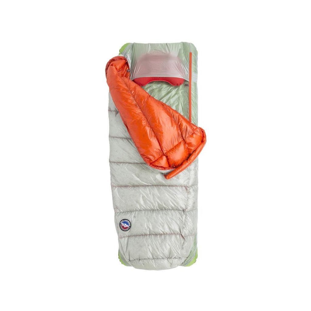 Jako náplň je použito certifikované kachní peří DownTek™ s plnivostí 850FP a hydrofobní úpravou bez škodlivých fluorokarbonů. Díky této úpravě peří daleko lépe snáší vlhkost, drží si svůj loft a rychleji schne. Vnější péřová deka je naplněna 225 gramy peří a má celkovou hmotnost 706 gramů ve velikosti regular. Jako vnější a vnitřní materiál je použit ultralehký rip-stop nylon, který samozřejmě disponuje i kvalitní voděodpudivou DWR úpravou bez fluorokarbonů. U každého spacáku Big Agnes naleznete modrou visačku s QR kódem díky kterému snadno zjistíte původ peří jakým je spací pytel naplněn.