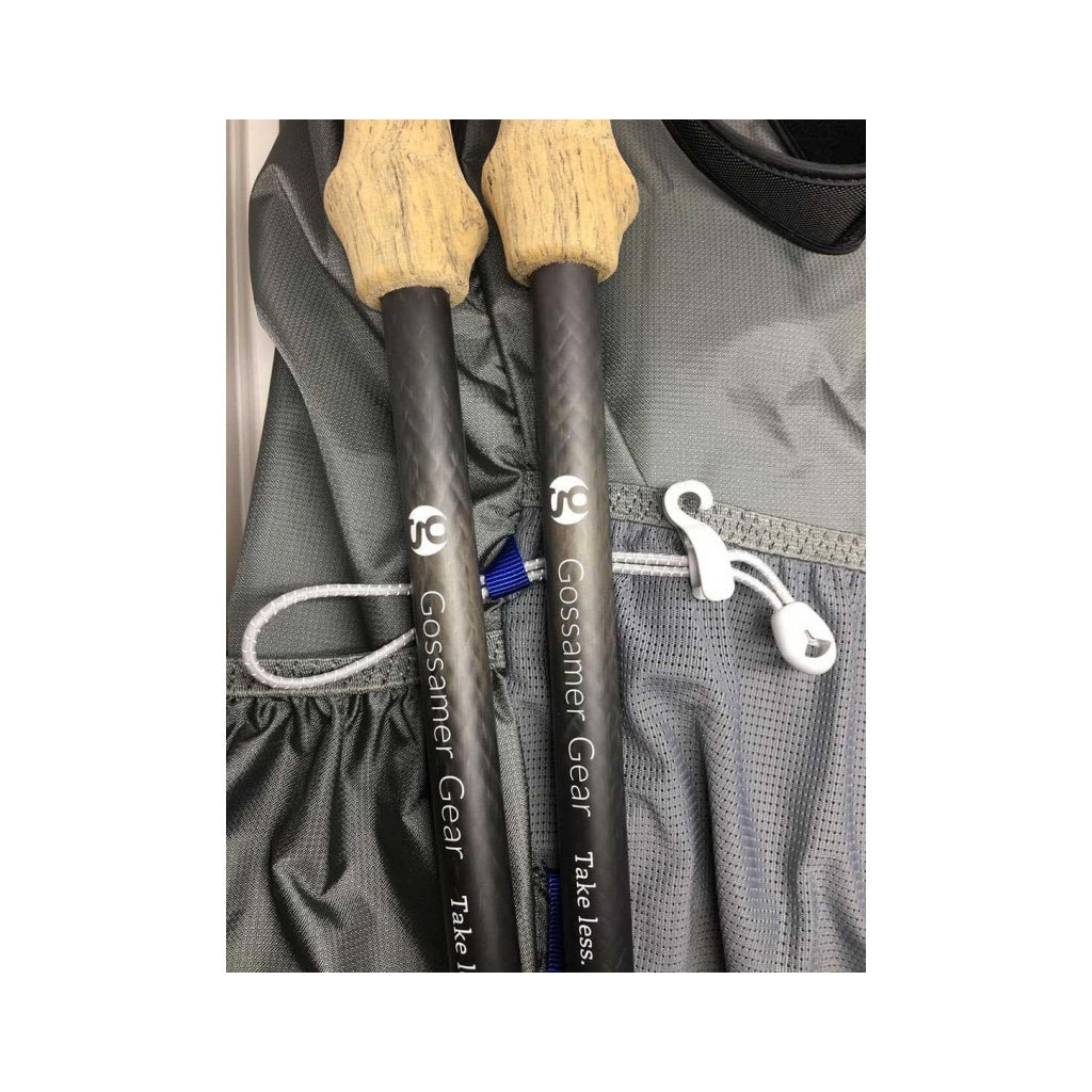 Dvojice praktických gumiček se stahováním a háčkem pro uchycení trekových holí na batohy Gossamer Gear.